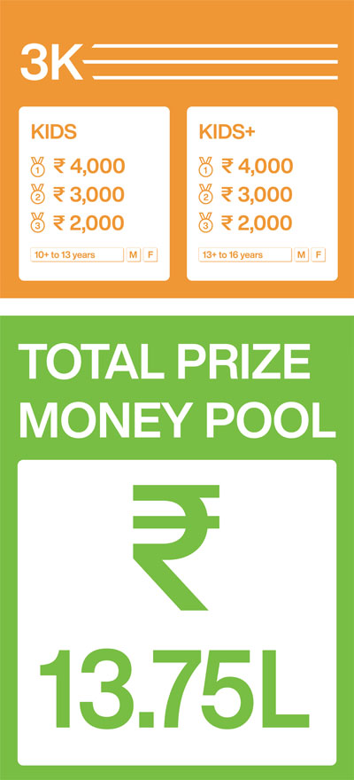 3K Fun Run - 5+ yrs to 13 yrs and 13+ yrs to 16 yrs (Boys and Girls), 16+ yrs and above (open for all)