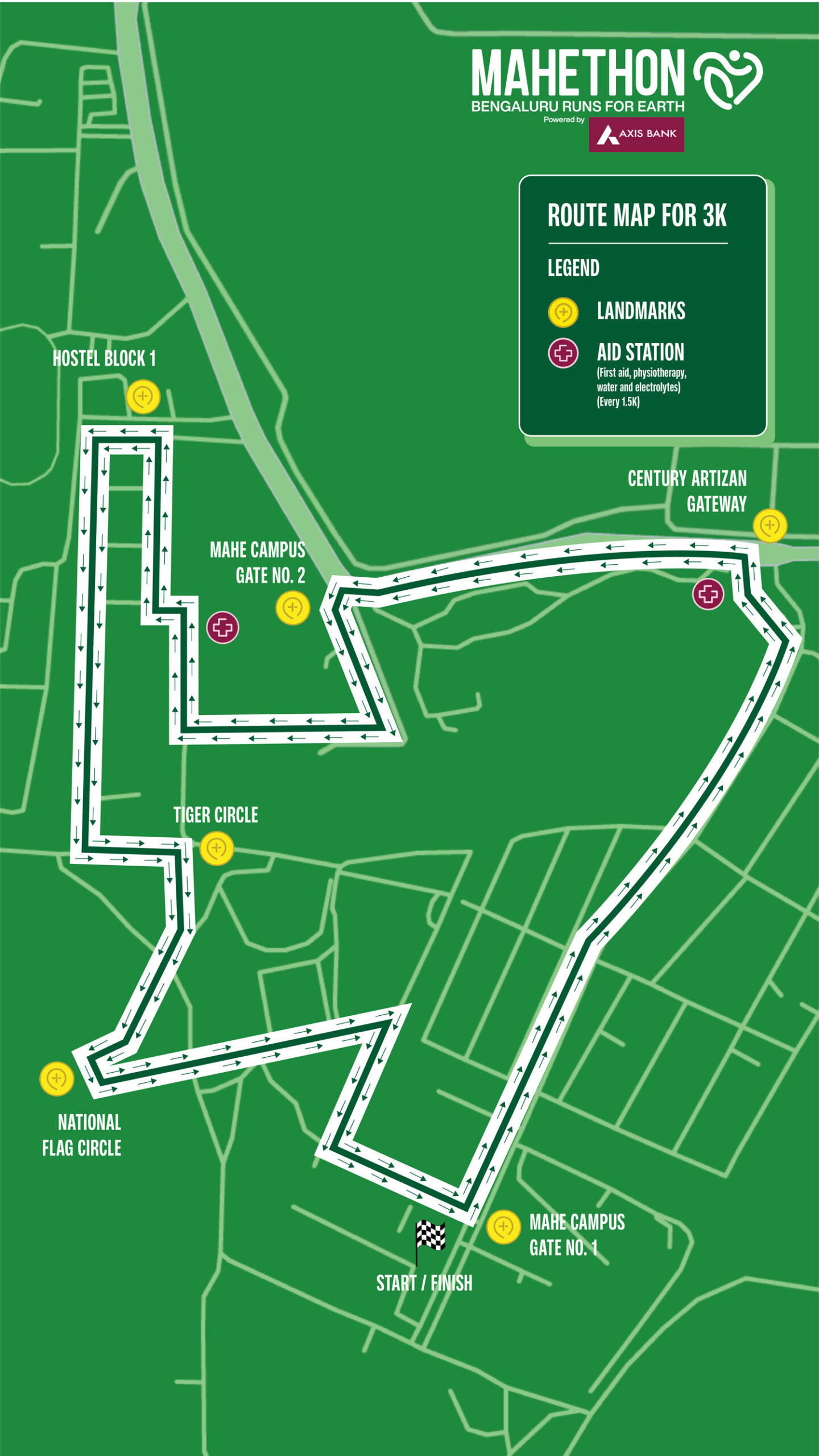 The MAHE Bengaluru Marathon “MAHETHON” powered by Axis Bank route is officially certified by AIMS – Association of International Marathons and Distance Races,the global organization that partners with World Athletics to ensure the highest standards for road race measurements.